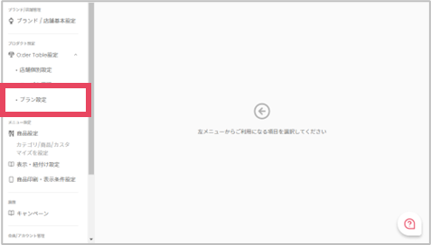 ⑬[O:der Table設定]をクリックし[プラン設定]をクリック