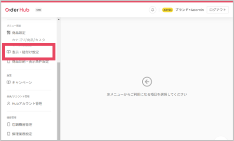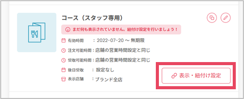 ⑥作成したメニューブックの[表示・紐付設定]をクリック