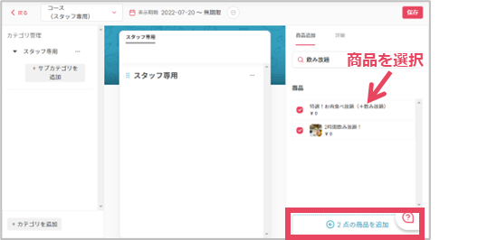 選択した商品をどのカテゴリに所属させるかこのあと指定します。