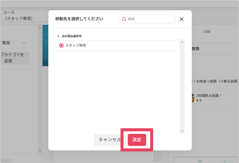 ㉘「メニューの種類」で「スタッフ専用メニュー」を選択