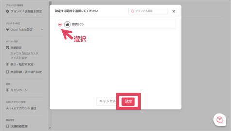 ③の手順で設定したメニューブック名がこのプルダウンに表示されます。