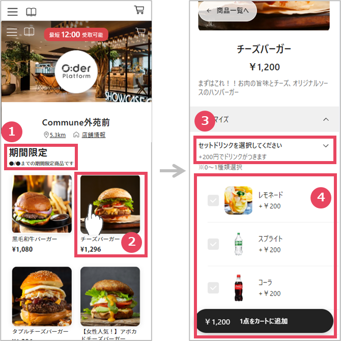 メニューにはカテゴリ・商品・カスタマイズグループ・カスタマイズ商品があります。