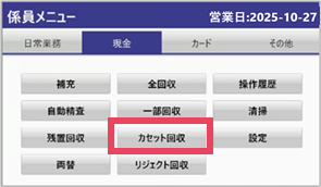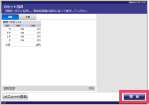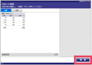 ④紙幣カセットを交換後、回収内容を確認し問題なければ[確認]をタップ