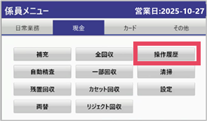 操作手順 ①[現金]をタップ ②[補充]をタップ ③[開始]をタップ ④補充したい現金を入れ[終了]をタップ ⑤[確認]をタップ ↓ 伝票が出力されます。 <出力伝票イメージ> 伝票は設定されている場合のみ出力されます。 現金補充時の伝票出力の有無は、係員画面の「現金」タブ内にある「設定」から変更可能です。 操作手順についてはこちらの記事を参照してください。