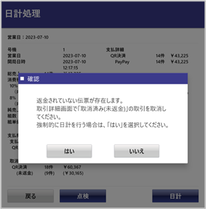 【係員画面】日計ボタン押下後、確認ダイアログが出る
