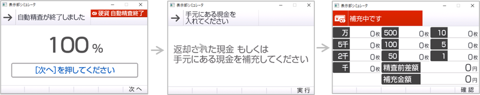 ⑤Kiosk手元の画面で[次へ]、[実行]を押し補充が完了したら[確認]をタップ