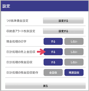 (例)売上金回収「する」、日計処理の現金回収「する」の場合