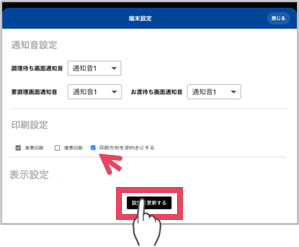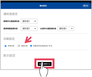 ③「単票印刷」 「複票印刷」を選択し[設定更新]をタップ