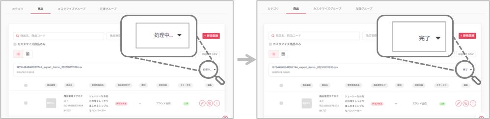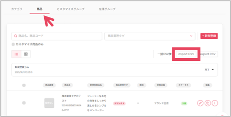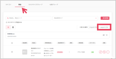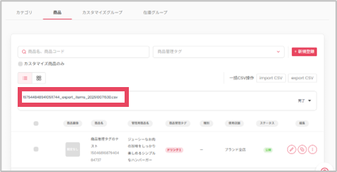 既存商品の更新:ダウンロードしたときの商品IDを編集しない