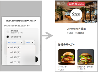 指定した日に受取可能なメニューブックが表示されるようになります。