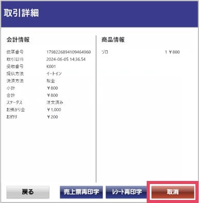 ⑤[伝票取消]をクリック
