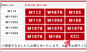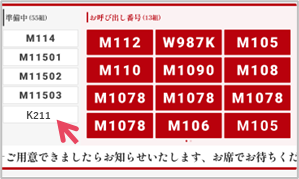 サイネージを利用しているブランドでは、お渡し待ちを開くと呼び出し用ボタンが表示されます。