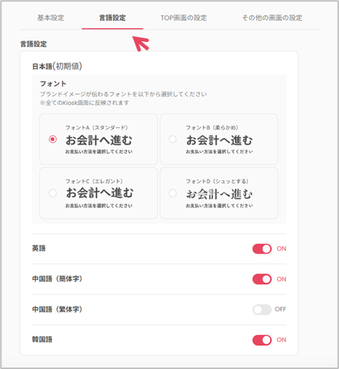 【O:der Kiosk】Kiosk設定>販売画面設定