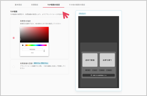 「背景色を指定」「背景画像を登録」どちらか選択し、それぞれ設定してください。
