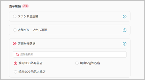 このメニューブックをどの店舗に表示させるか選択します。