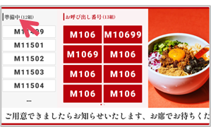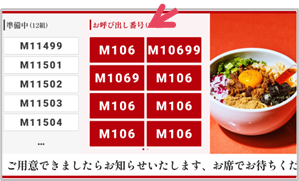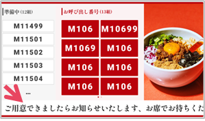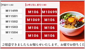 O:der Kitchenの「お渡し待ち」タブにいる注文が、サイネージ画面の左側に表示されます。