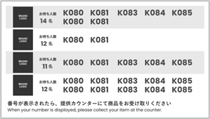 既に調理が完了し、各店舗の呼び出し中の番号のみが表示されます。