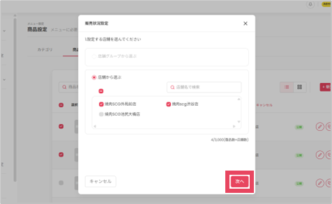 ③設定する店舗、もしくは店舗グループを選択