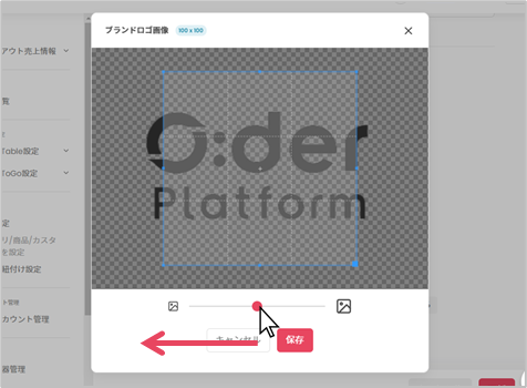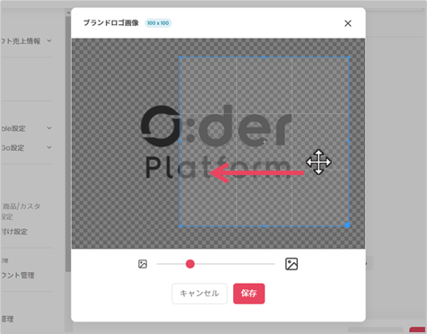 赤いポイントをクリックしながら左に移動させると画像が小さくなります。同様に右に移動させると大きくなります。