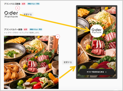操作手順 ①[ブランド / 店舗基本設定]をクリック ②変更するブランドの編集ボタンをクリック ③各項目を更新し[更新]をクリック 各種項目について ①ブランド名 エンドユーザーが見るモバイルオーダーページには表示されません。 O:der Hub上での識別にご利用ください。 ②営業日日付変更時刻 「ブランド単位の集計」「店舗単位の集計」で何時までの取引を当日としてカウントするか指定します。 (例)1:00am(25:00)まで営業している店舗 ...