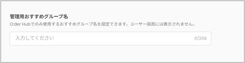 O:der Hubのおすすめグループ一覧や、商品におすすめグループを紐づける画面で表示されます。