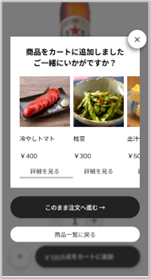 おすすめグループを設定すると、商品を注文しようとしたときにポップアップでおすすめ商品が表示されます。