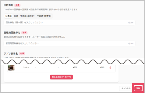 回数券利用時にエンドユーザーが追加料金を支払う必要がないよう、注文時に自動で差し引く金額として設定します。