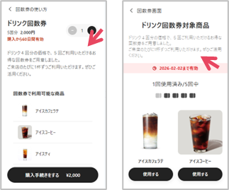 回数券購入時の詳細画面と、回数券利用時の画面に表示されます。