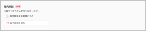 無期限で販売するときは「販売期間を無期限にする」をonにしてください。