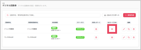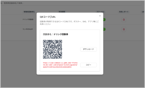デジタル回数券を利用するには、デジタル回数券を登録したあとQRコードを管理画面からダウンロードしエンドユーザーに配布する必要があります。