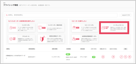 プライシング機能には複数のクーポン・セールがあります。各クーポン・セールの違いについてはこちらの記事を参照してください。