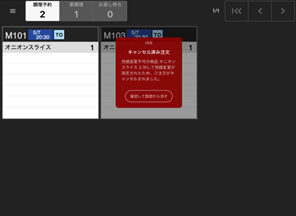 システムにより自動キャンセルされたときはO:der Kitchenアプリに「キャンセル済み注文」として表示されます。
