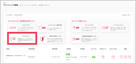 プライシング機能には複数のクーポン・セールがあります。各クーポン・セールの違いについてはこちらの記事を参照してください。