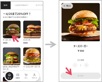 設定すると、モバイルオーダーページでは売り切れ表示になり注文できなくなります。