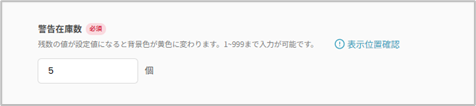 在庫が、ここに設定した数を下回ると、O:der Kitchenアプリの「品切れ管理」画面で在庫グループの背景色が黄色になります。