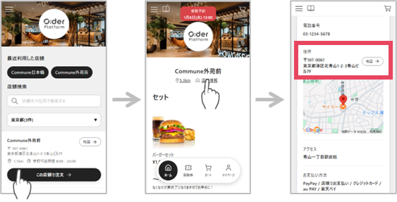 【O:der ToGo】店舗アクセスの説明を変更したい