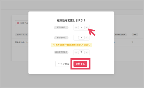 ④変更後の個数になるよう「+」「ー」で数を変更し[変更する]をクリック