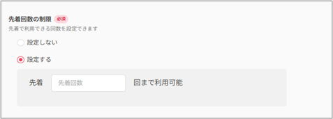 先着〇回まで利用可能というように回数制限を設けたい場合は、「設定する」を選択して回数を入力します。