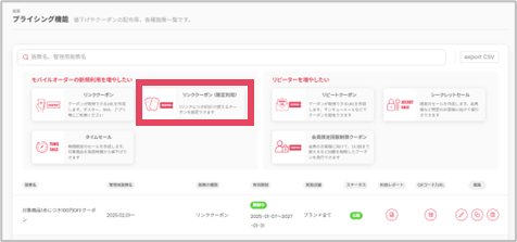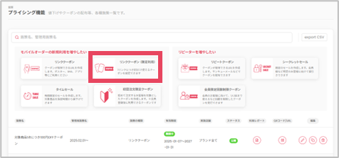 リンククーポン(限定利用)は、1度だけ利用可能なクーポンが取得できるURLを発行します。