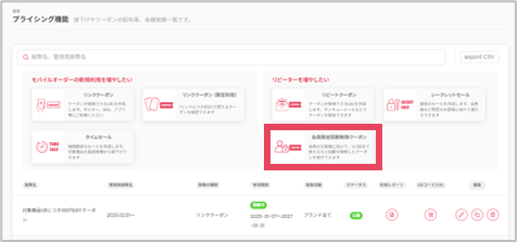 プライシング機能には複数のクーポン・セールがあります。各クーポン・セールの違いについてはこちらの記事を参照してください。