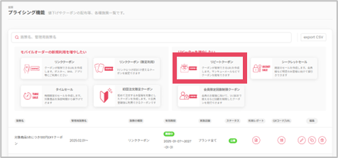 プライシング機能には複数のクーポン・セールがあります。各クーポン・セールの違いについてはこちらの記事を参照してください。