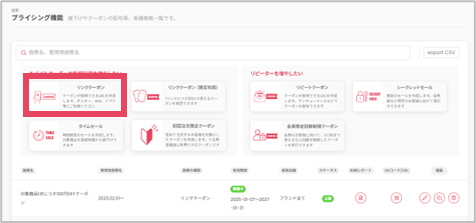 プライシング機能には複数のクーポン・セールがあります。各クーポン・セールの違いについてはこちらの記事を参照してください。