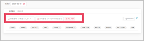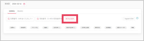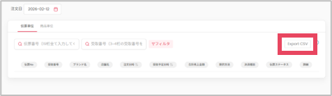 指定した期間内の伝票(注文)ごとに結果が表示されます。