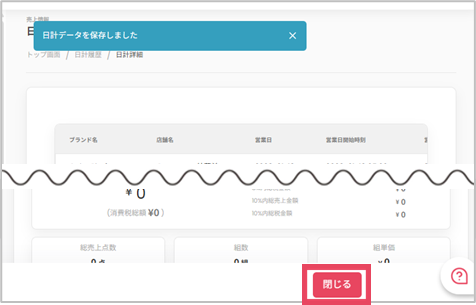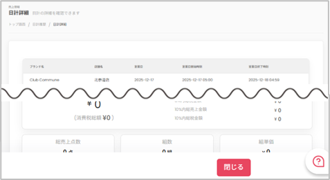 [閉じる]をクリックすると日計履歴一覧画面に戻ります。