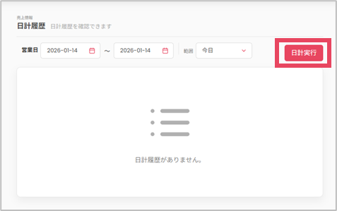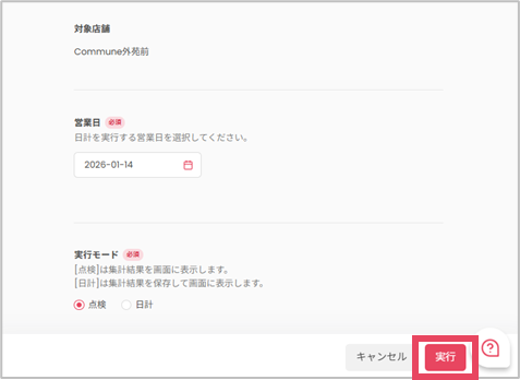 ③日計を実行する営業日・実行モードを指定し[実行]をクリック