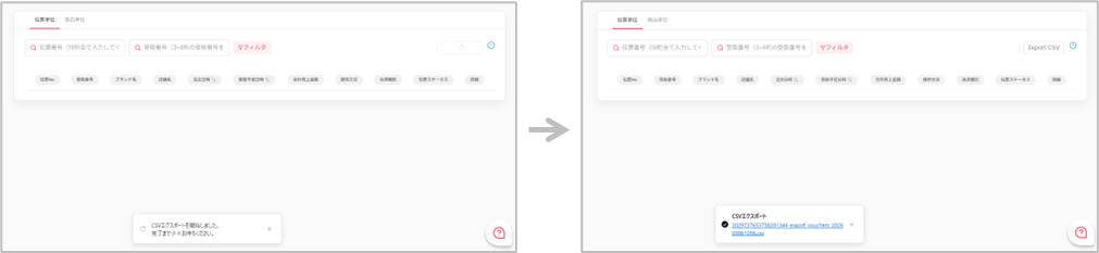 ・伝票ステータス:未会計/会計済み/取消済み