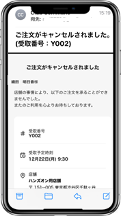 「ご注文がキャンセルされました」と書かれたメールが送信されます。