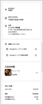 どのメールも共通して「受取番号」「受取日時」「受取店舗」「注文内容」「合計金額」が表示されます。
