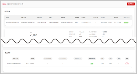 【O:der ToGo NEC POS連携】O:der ToGo売上情報>ブランド単位の集計