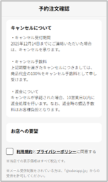 注文時の注文確認画面に表示されます。